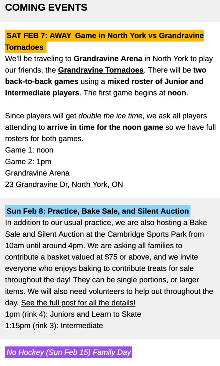 We’re excited to announce that our team will be hosting a Bake Sale and Silent Auction at the Cambridge Sports Park on February 8th, 2026! This is a great opportunity to support our players and help raise funds for the season. Silent Auction – Basket Donations As discussed, we are asking each [...]